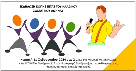 Με μεγάλη επιτυχία και συμμετοχή αρκετών συναδέλφων από διάφορους χώρους πραγματοποιήθηκε η εκδήλωση του Κλαδικού Σωματείου – κοπή πίτας για το 2024. Μια εκδήλωση που μας έδωσε τη δυνατότητα να διασκεδάσουμε σε ένα γνήσιο λαϊκό γλέντι ακριβώς όπως σχεδιάσαμε. Με συναδελφικότητα μακριά από το άγχος της καθημερινότητας. Καλή Χρονιά σε όλους.
