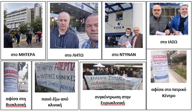 Τα μέλη των παρατάξεων ΕΝ.ΕΡ. και Αδέσμευτη Αγωνιστική Κίνηση μέσα από τα Σωματεία τους πρωτοστατούν στην επιτυχία της Απεργίας στις Ιδιωτικές Κλινικές. Πραγματοποιούνται  περιοδείες στους περισσότερους χώρους δουλειάς.  Δόθηκε ιδιαίτερη σημασία στην ενημέρωση όλων των εργαζομένων  σχετικά με την ουσία της πρότασης των εργοδοτών και την ανάγκη μαχητικής και ενωτικής απάντησης από τον Κλάδο.